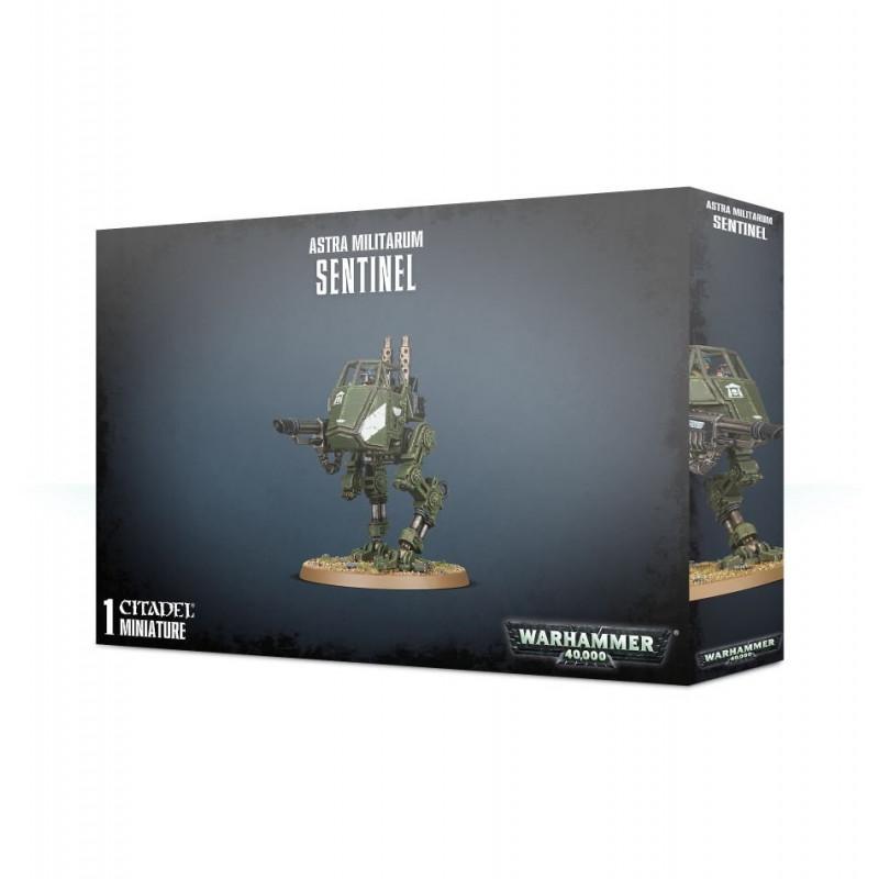 Cette boîte contient tous les éléments nécessaire pour monter et peindre une sentinel. Ce kit de 59 pièces permet de monter soit une Armoured Sentinel, soit une Scout Sentinel. Ce kit comprend également deux têtes de pilote Cadian et deux Catachan. Inclut aussi toutes les variantes d'armes montable sur un Sentinel : un multi-laser, un lance flamme lourd, un auto canon, un canon laser, un canon plasma et un lance missile. Figurine fournie avec un socle rond de 60mm.