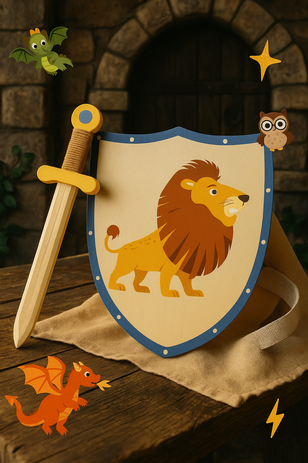 Épée et Bouclier en Bois – Petit Chevalier Lion