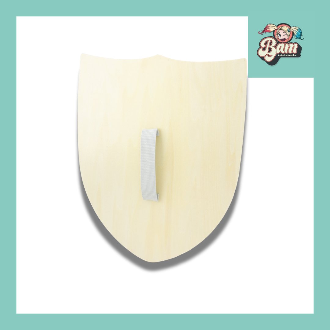 Facile à tenir grâce à sa poignée en corde, cette épée est parfaite pour les duels de l’honneur (et sans danger, évidemment !). Le bouclier, lui, dispose d’une sangle à l’arrière pour un maintien optimal pendant la bataille.