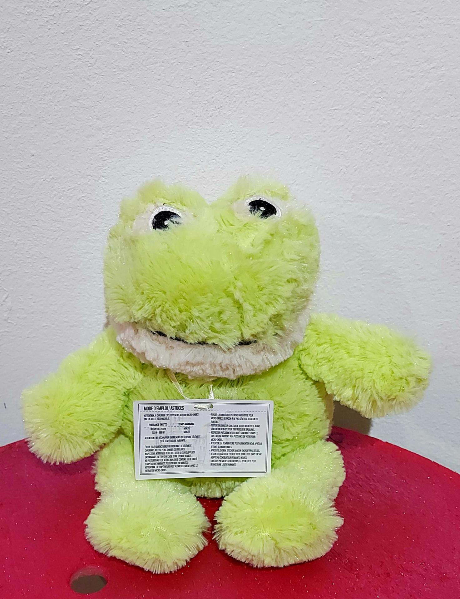 Magnifique peluche bouillotte micro-ondable grenouille !