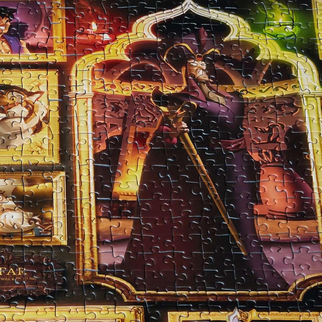 Superbe puzzle de 1000 pièces pour les fans de Disney et de ses Supers vilains de la marque Ravensburger, collection Villainous. Une impression de qualité pour les puzzleurs passionnés. Cette illustration met à l'honneur l'univers maléfique du vizir Jafar, ennemi de la princesse Jasmine et d'Aladin.