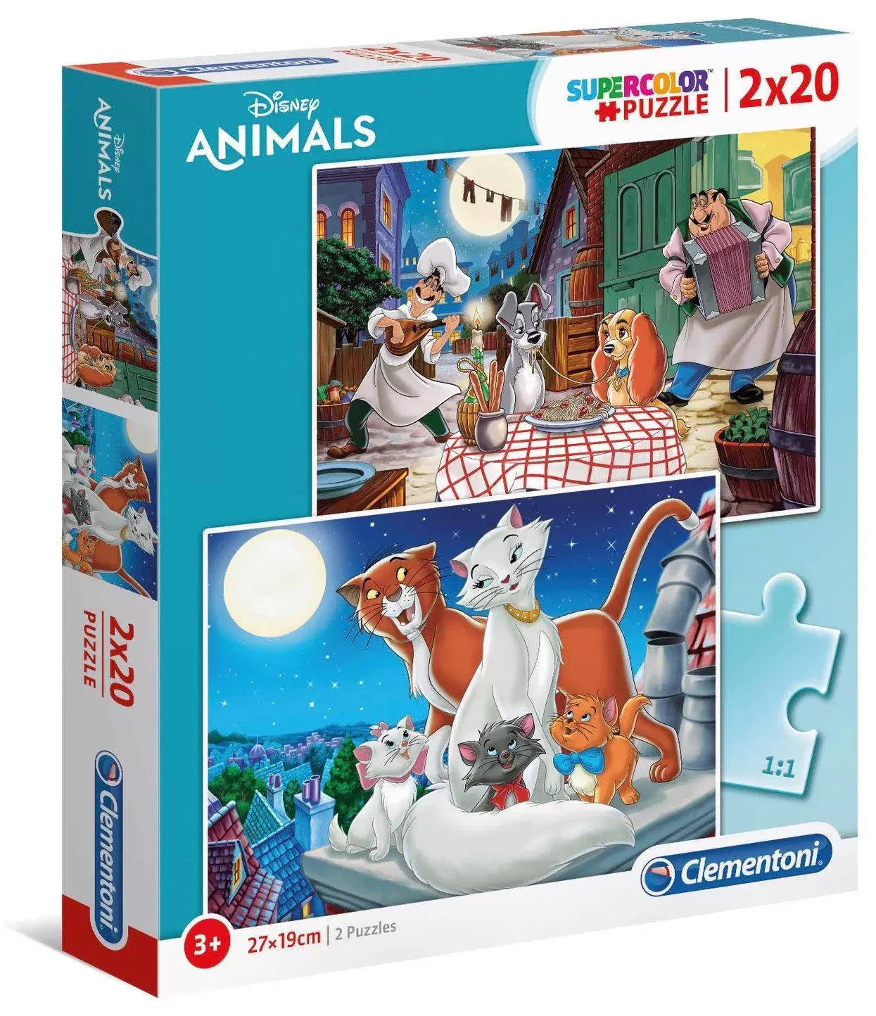 Puzzle enfant Disney supercolore en 2 puzzles de 20 pièces maxi. Taille : 27x19cm