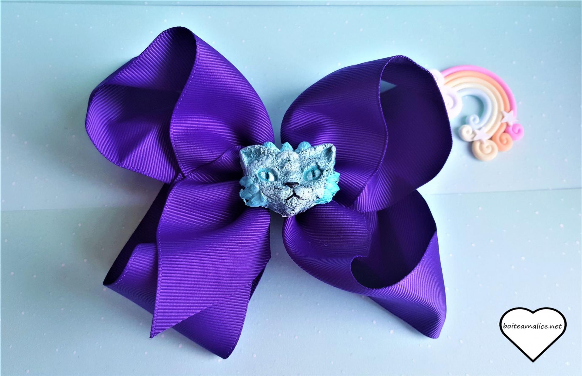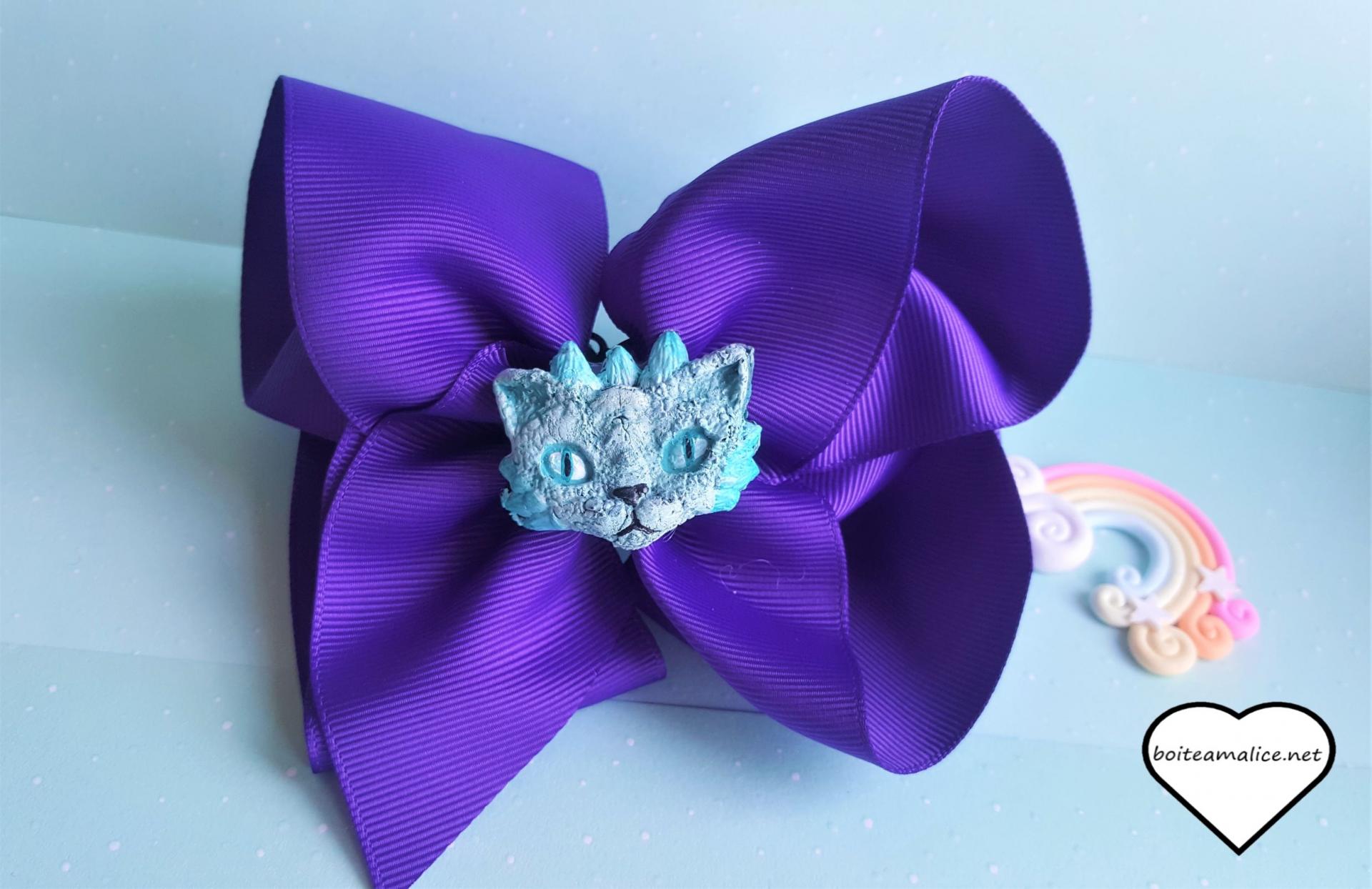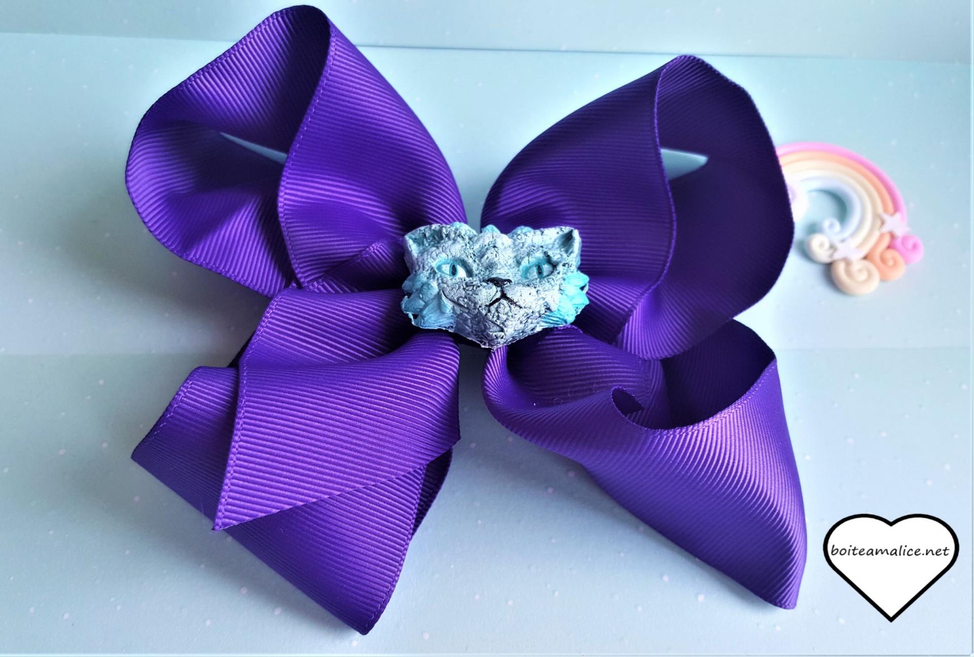 Gros nœud barrette pour cheveux, barrette pince crocodile. Violet et dragon des neiges en pâte polymère.