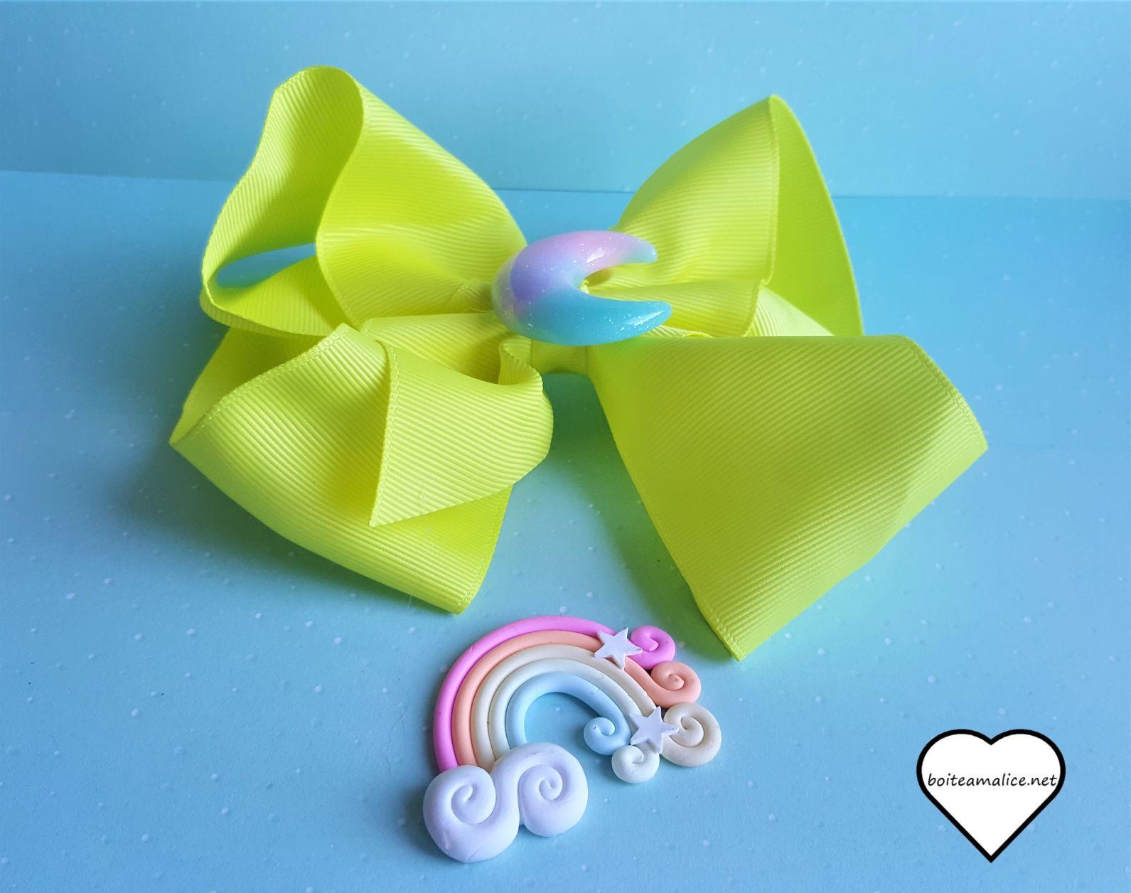 Gros nœud barrette pour cheveux, barrette pince crocodile. Jaune avec arc en cielBarrette à Noeud ...5,00€ TTC