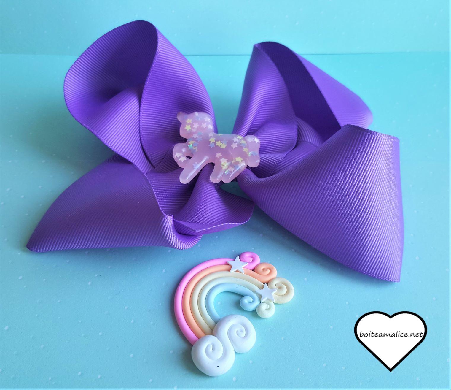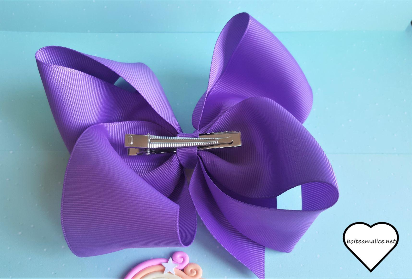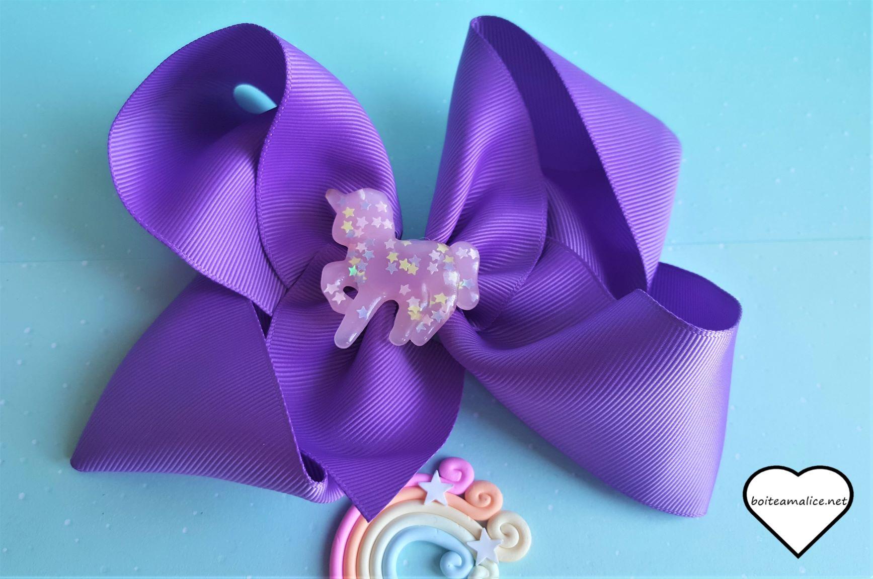 Gros nœud barrette pour cheveux, barrette pince crocodile. Noeud violet et licorne étoilées