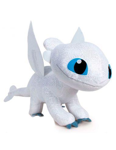 Jolie dragonne au yeux bleus et écailles blanche elle est le cadeau idéal pour que vos enfants se replongent dans les films des strudios Dreamworks et fassent marcher leur imagination.