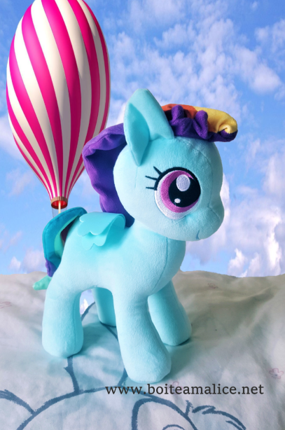 Arrivée tout droit du Pays de l'arc en ciel cette peluche à l'effigie de Rainbow Dash le poney arc en ciel bleu héro de my little pony, fera le plus grand bonheur de vos enfants, tout doux il adorera le câliner.
