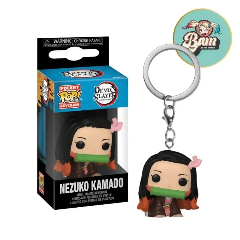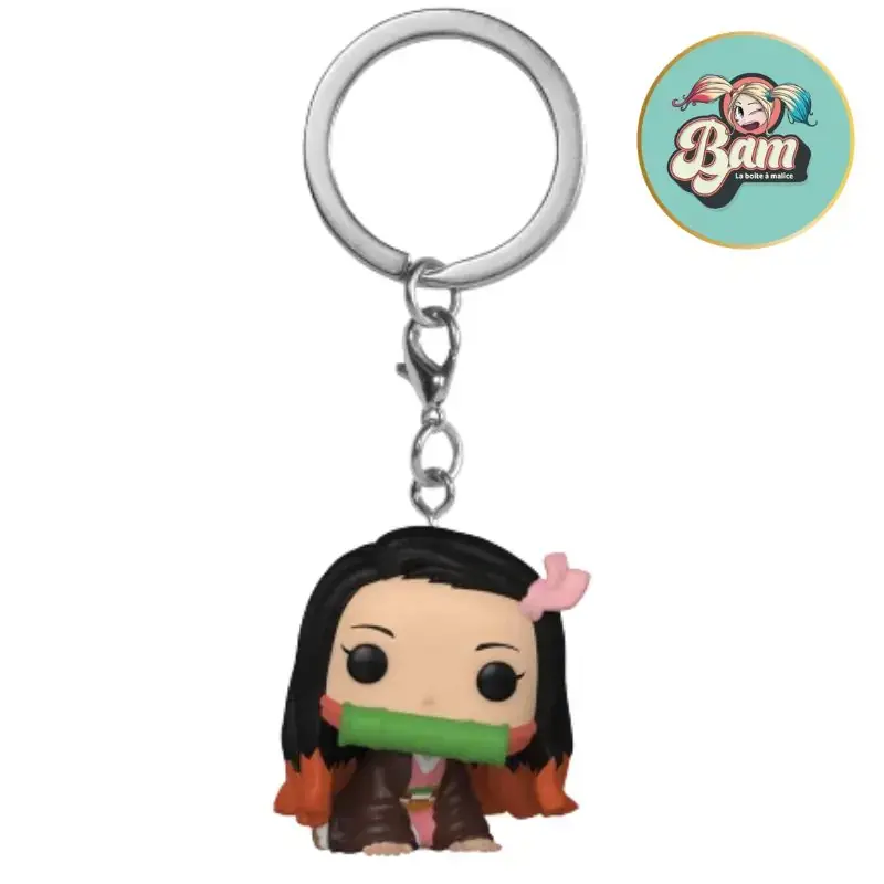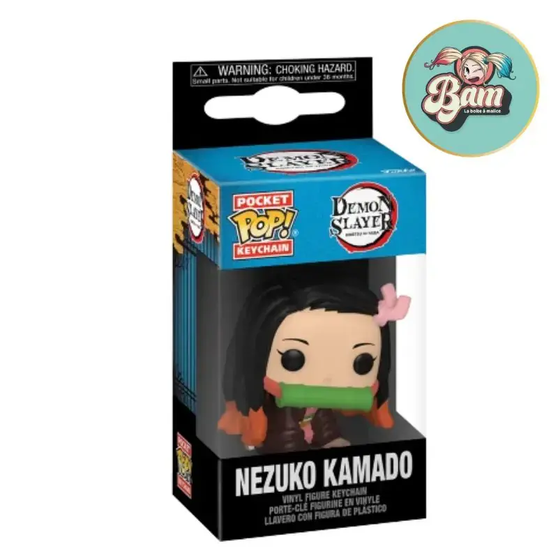 La protectrice de Tanjiro s'invite à vos clés ! Craquez pour ce porte-clés Funko Pocket Pop! de Nezuko Kamado. Une figurine miniature de 4 cm ultra-détaillée pour afficher votre passion pour Demon Slayer avec style et mignonnerie.
