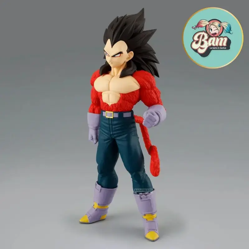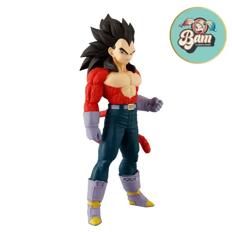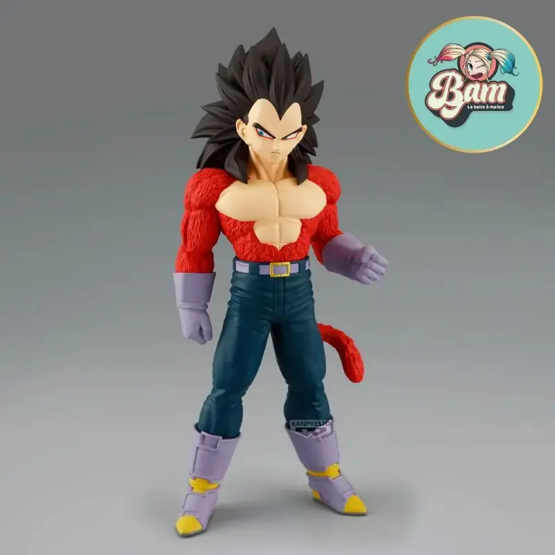 Cette figurine célèbre l'arc mythique de Dragon Ball GT. Je trouve que la transformation en Super Saiyan 4 est l'une des plus impressionnantes visuellement. Retrouver Vegeta avec ce regard fier, sa fourrure pourpre et sa queue de singe iconique est un indispensable pour tout fan qui a grandi avec les aventures de la quête des Dragon Balls aux confins de l'univers.
