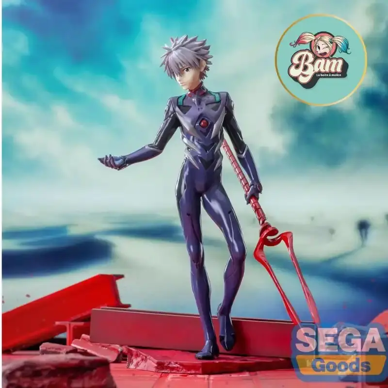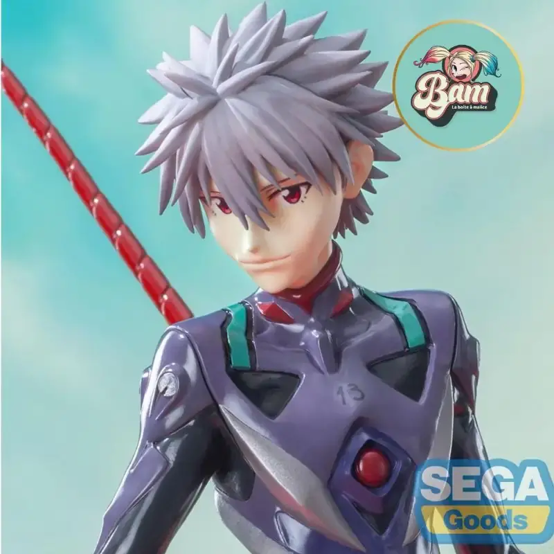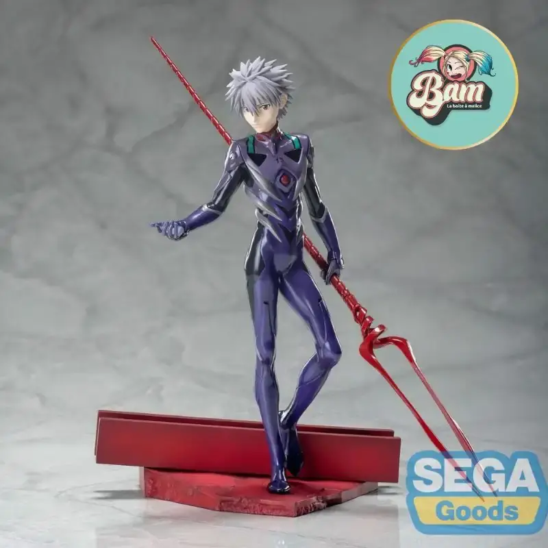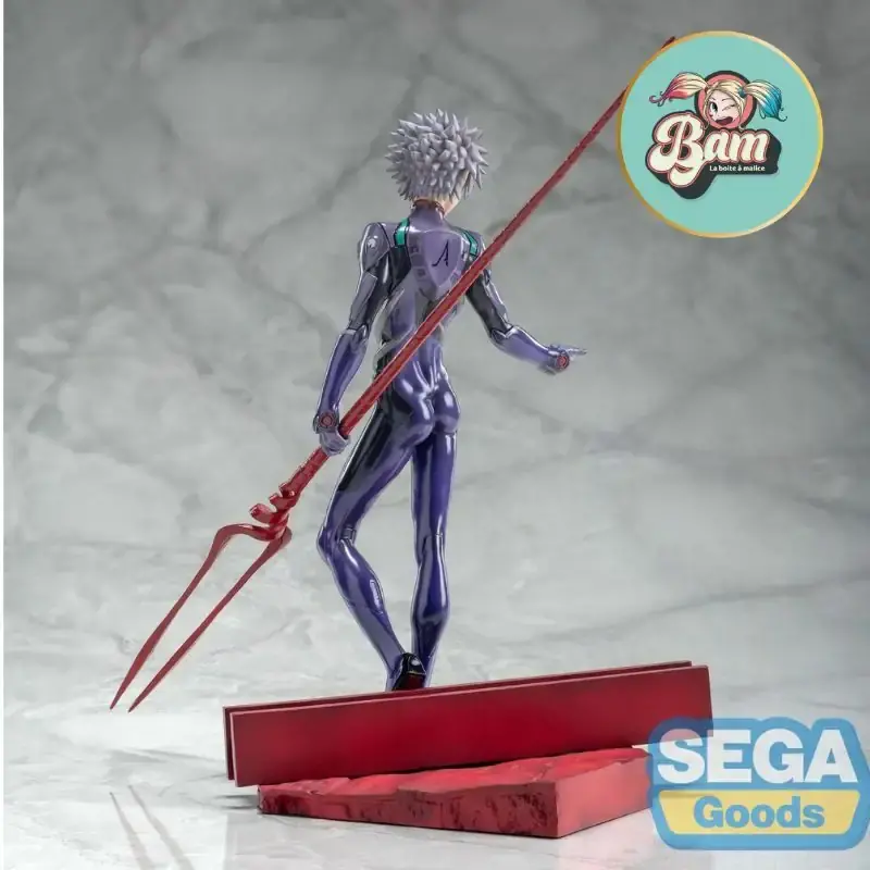 Cette figurine Kaworu Nagisa Luminasta de 21 cm est une pièce spectaculaire tirée du film Evangelion: 3.0+1.0 Thrice Upon a Time. Représenté dans son Plugsuit violet emblématique, Kaworu tient la légendaire Lance de Longinus avec une posture élégante et charismatique. Fabriquée en PVC de haute qualité par Sega, cette statuette officielle capture parfaitement l'aura mystérieuse et magnétique de ce personnage culte.