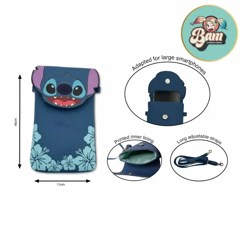 C’est là que Stitch entre en scène. Avec son coloris bleu profond et ses motifs de fleurs d'hibiscus, cette sacoche capture l'esprit d'Hawaï et la malice de notre extraterrestre préféré. Ce n'est pas juste un accessoire de protection, c'est une petite touche de magie Disney qui vient pimper votre tenue du jour. Que vous soyez en jean-baskets ou en petite robe d'été, elle s'adapte à votre style avec une légèreté déconcertante (seulement 67 grammes !).