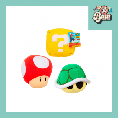 Assortiment peluches Super Mario officielles avec sons – Carapace, Champignon Power Up et Bloc...À partir de