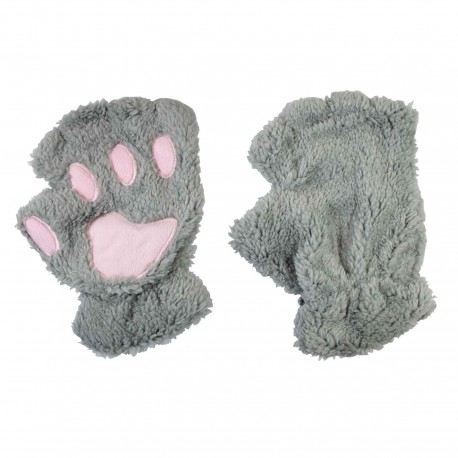 La mitaine kawaii, mignonne patoune de chat grises. Moelleux en peluche grise et rose pour tenir vos mains au chaud cet hiver.