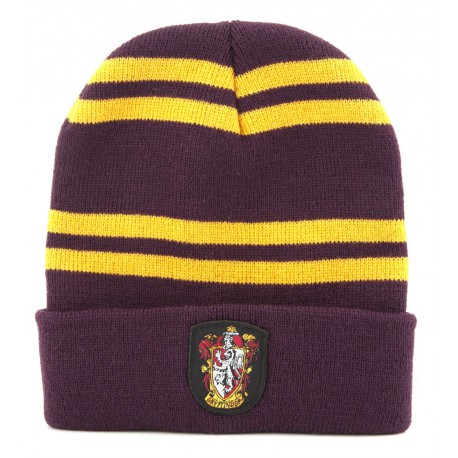 Le bonnet de la maison Gryffondor est rouge avec des rayures jaune et porte le blason à l'avant de cette maison où Harry Potter, Ron et Hermione ont été choisis par le choixpeau.