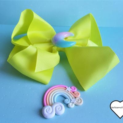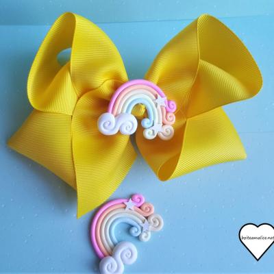 Gros nœud barrette pour cheveux, barrette pince crocodile. Jaune avec arc en cielBarrette à Noeud ...5,00€ TTC