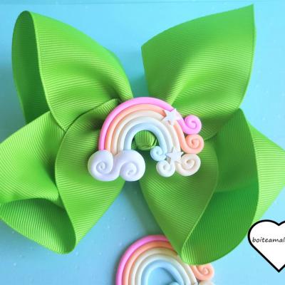 Gros nœud barrette pour cheveux, barrette pince crocodile. Vert avec arc en cielBarrette Gros Noeud ...5,00€ TTC