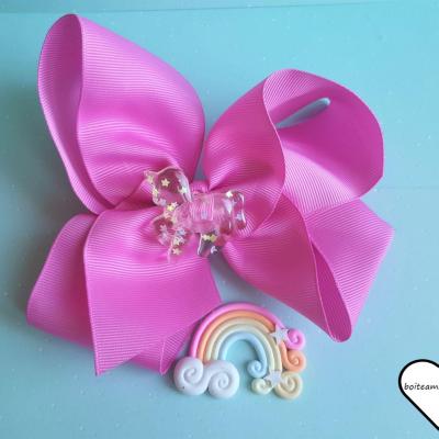 Gros nœud barrette pour cheveux, barrette pince crocodile. Bleu ciel avec arc en cielBarrette Gros Noeud...5,00€ TTC