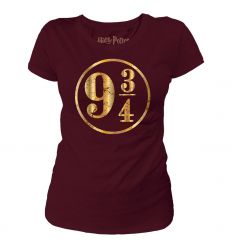 Tshirt Harry Potter coupe femme avec le logo de l'arrêt de train 9 3/4 pour aller à l'école des sorciers de Poudlard.