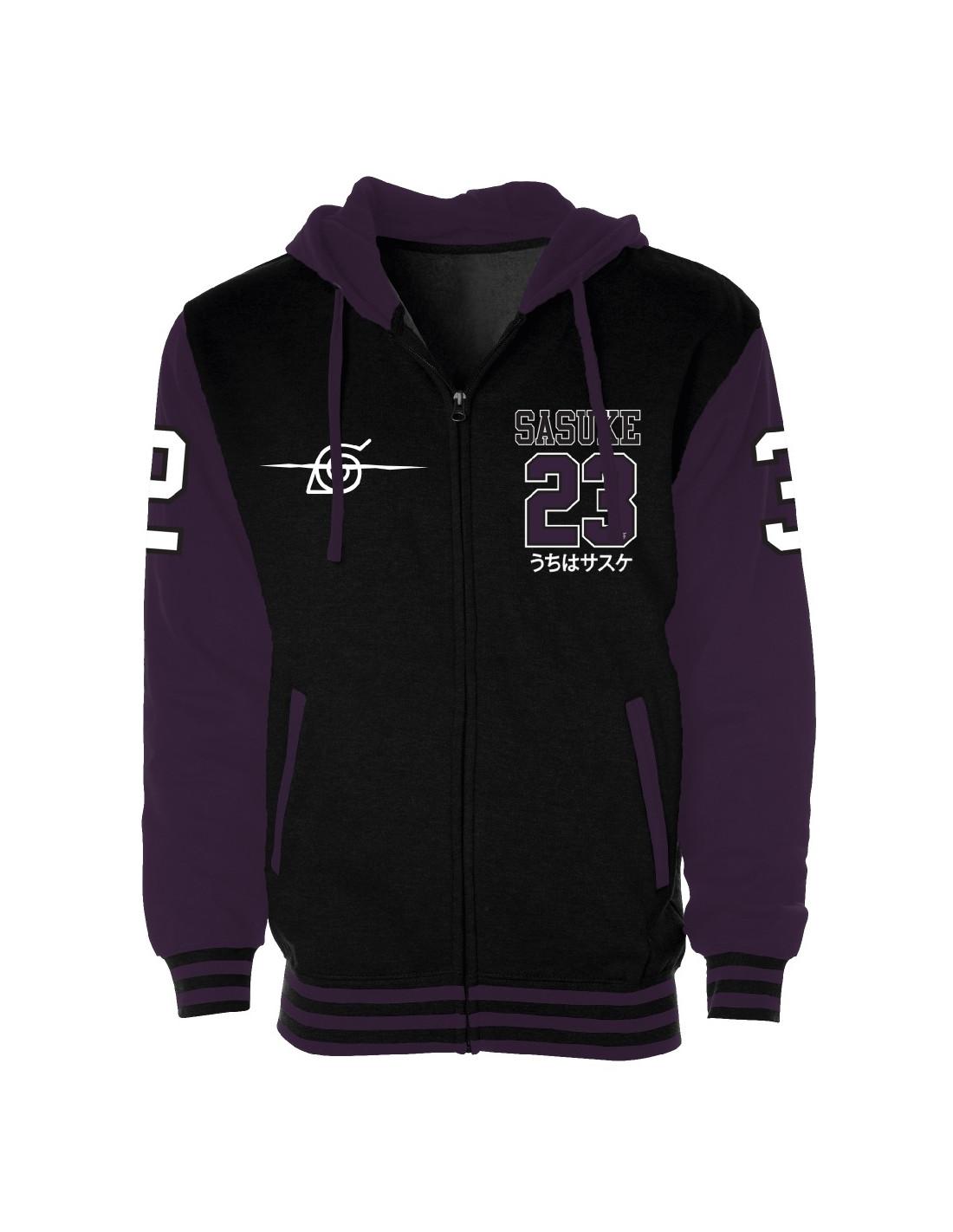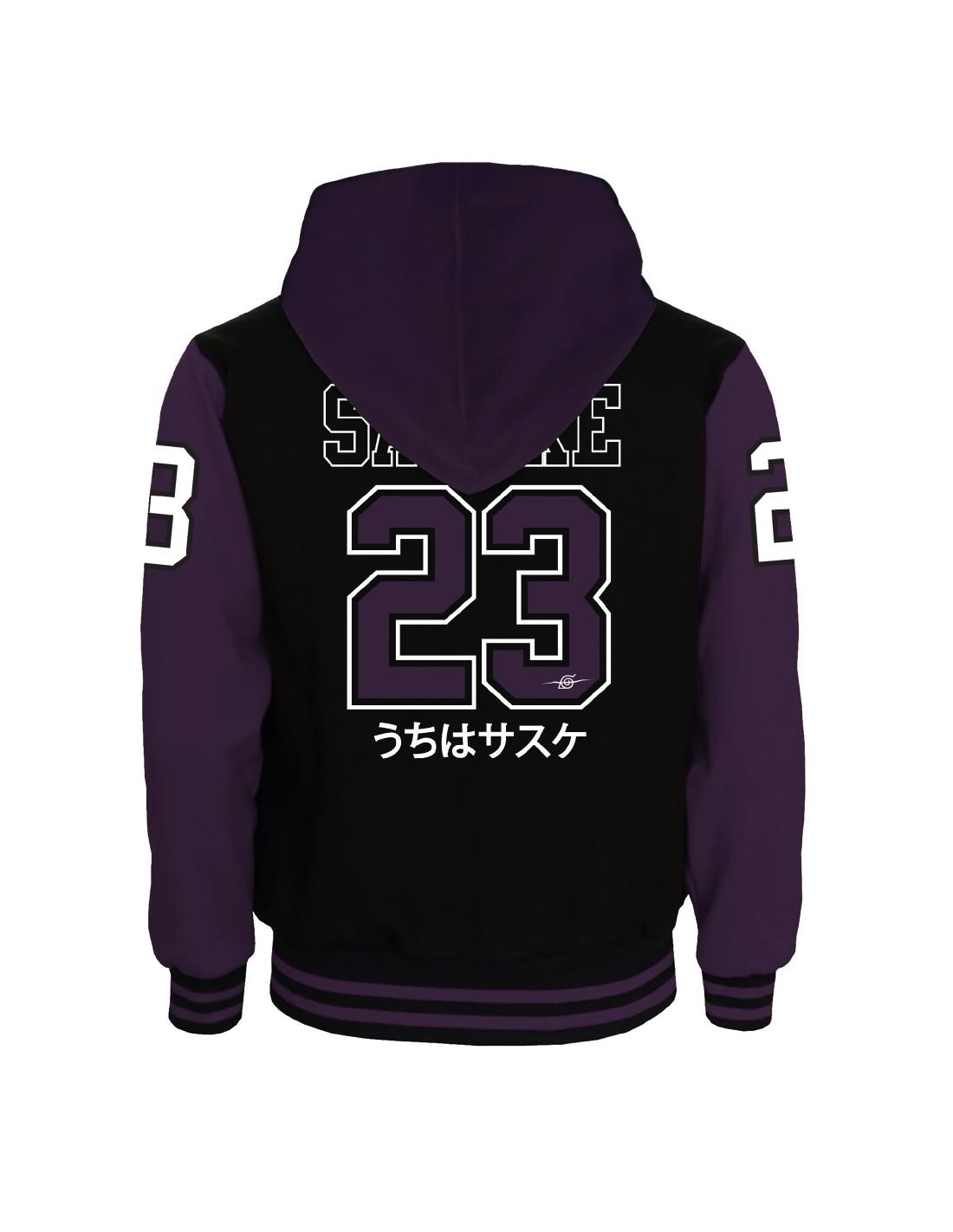 Sweat à capuche Sasuke - Sous licence Officielle Naruto - Veste universitaire noir et violet - 100% coton