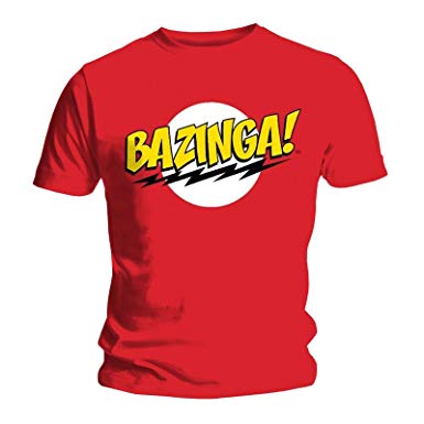 T shirt Bazinga la célèbre expression de Sheldon Cooper dans la série Big Bang Theory, la série la plus geek et délire.