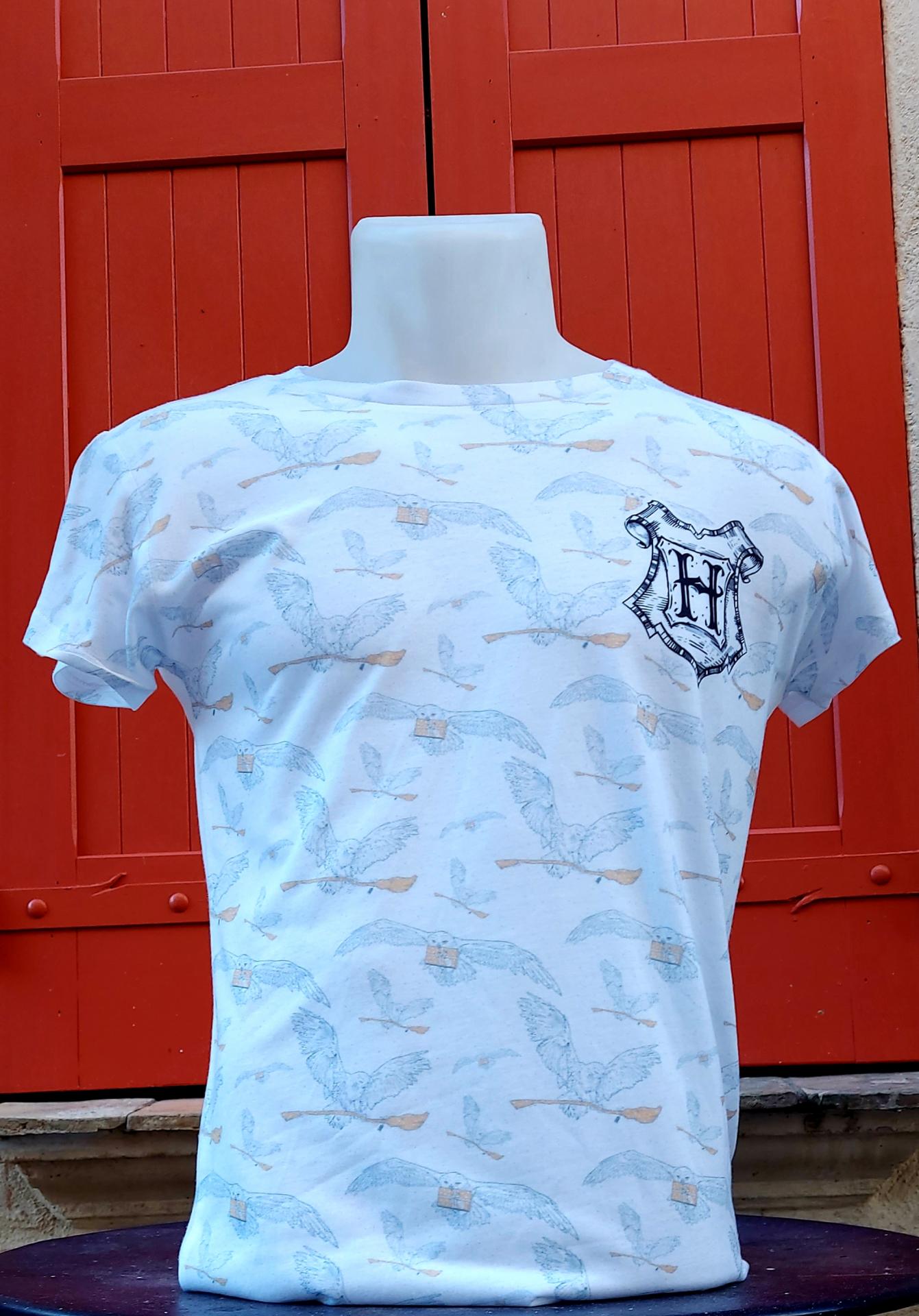T shirt coupe femme col rond imprimé chouette T shirt harry potter à manche courte.