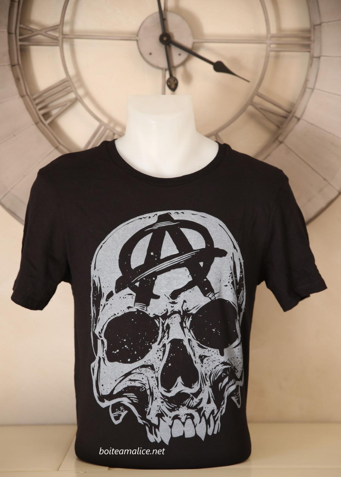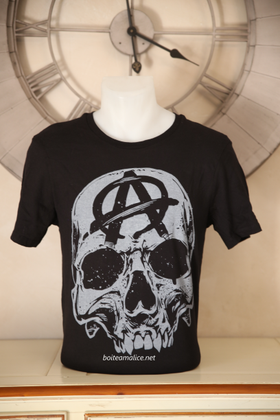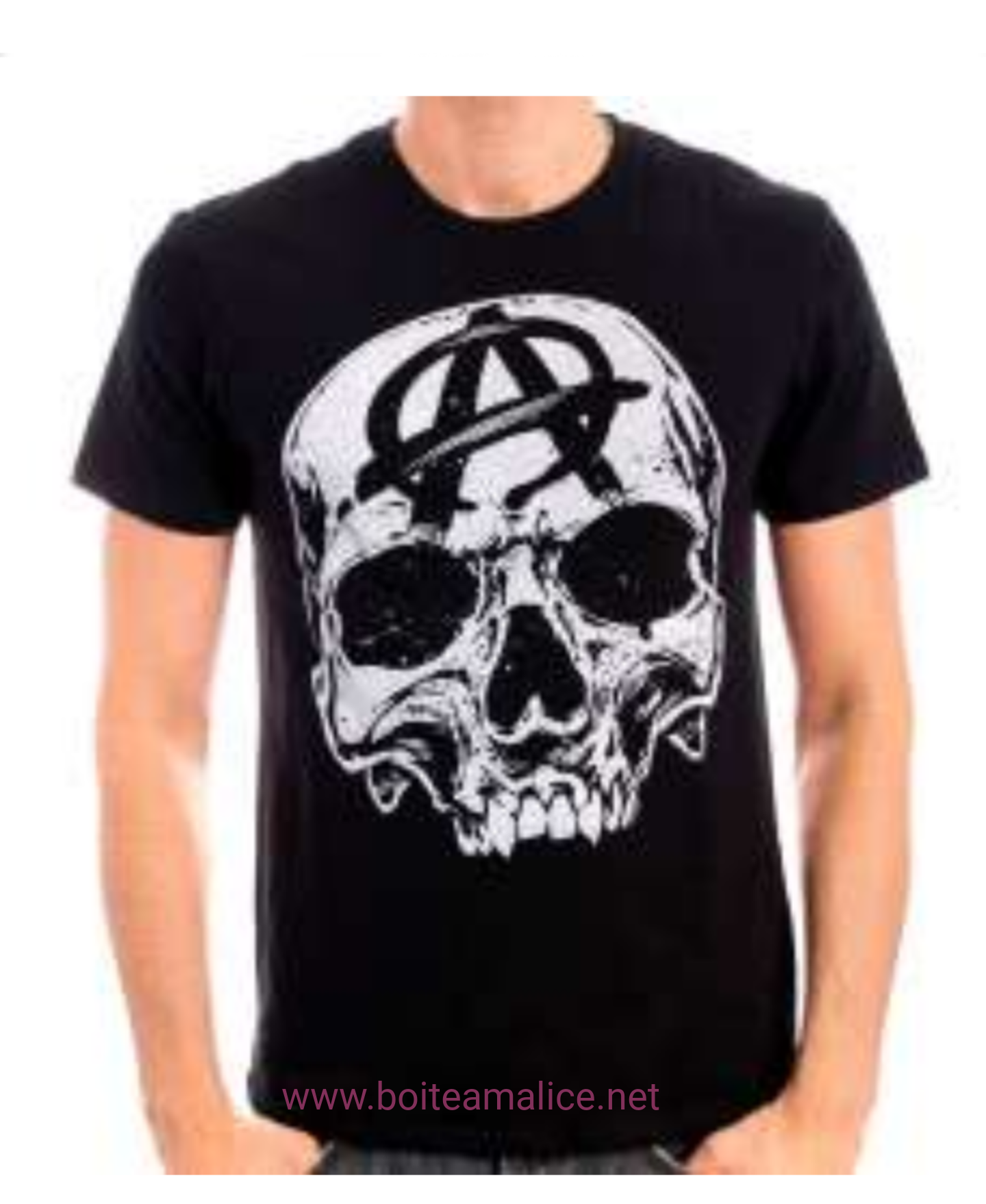 T Shirt Homme de la série SOA, noir avec crâne tête de mort blanc sur la poitrine.