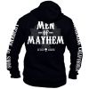 Veste noir, logo SOA faucheuse en blanc au recto sur la poitrine, au verso est écrit en blanc Men of Mayhem