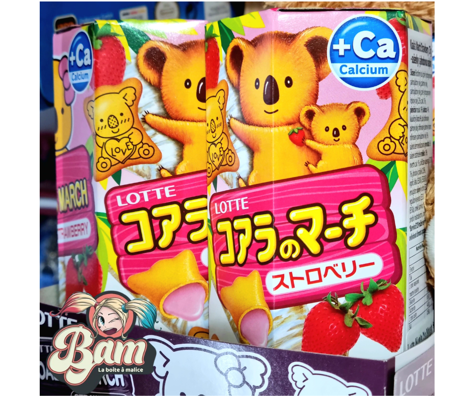 Découvre ses petits biscuits en forme de Koala goût fraise tellement mignon et Kawai qu'ils sont à croquer. Ce sont des biscuits japonais en forme de Koala qui possèdent un coeur fondant à la fraise à en tomber dans un nuage de douceur.