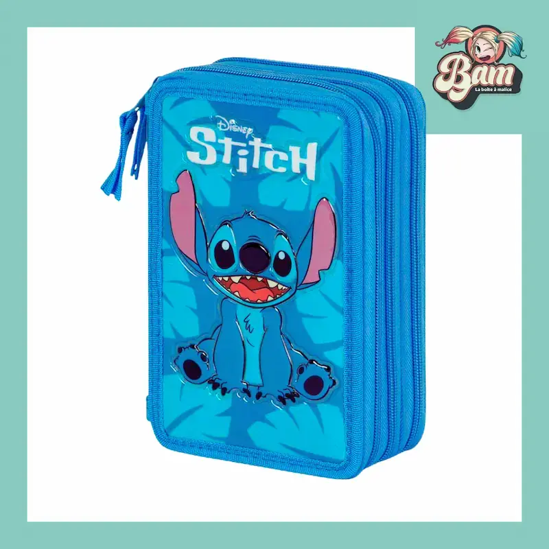 Trousse Stitch - Plumier triple avec fourniture scolaire