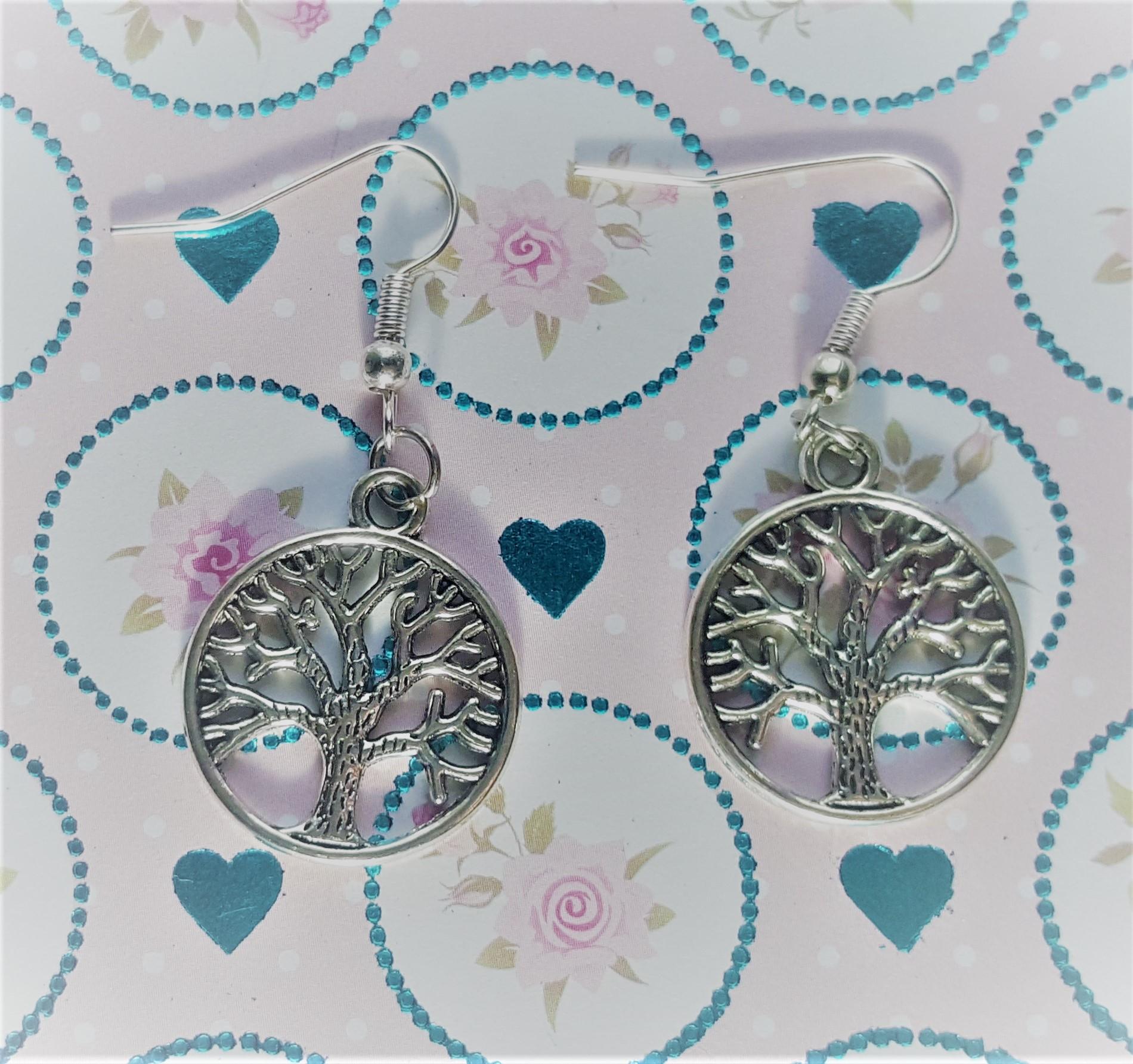 Ces boucles d'oreilles sont de couleur argent (métal argenté sans nickel). Les pendentifs arbre de vie sont de petites tailles, légers et fins.