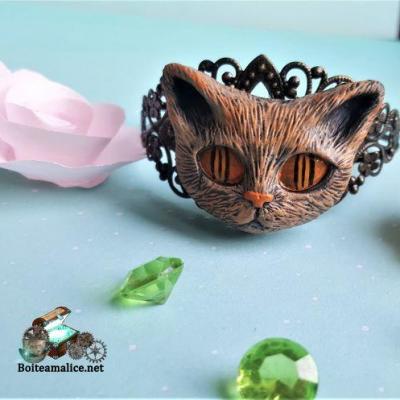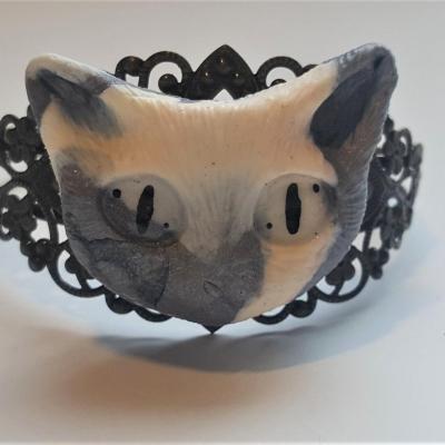 Bracelet Chat monté sur bracelet en métal bronze filigrane. FAIT MAIN Pâte polymère Bracelet Chat Mana Bracelet...15,00€ TTC