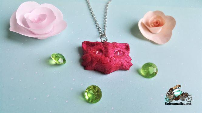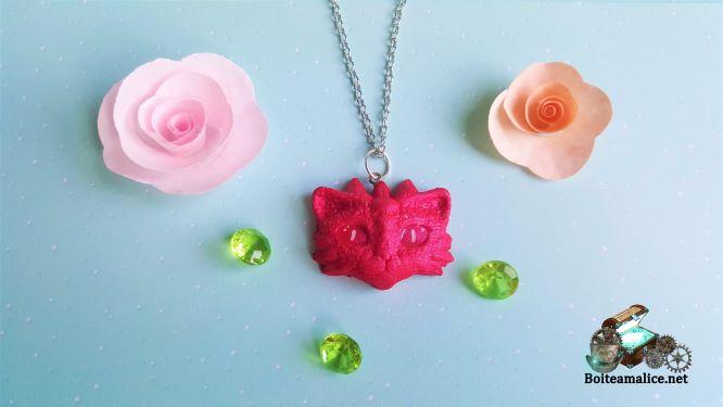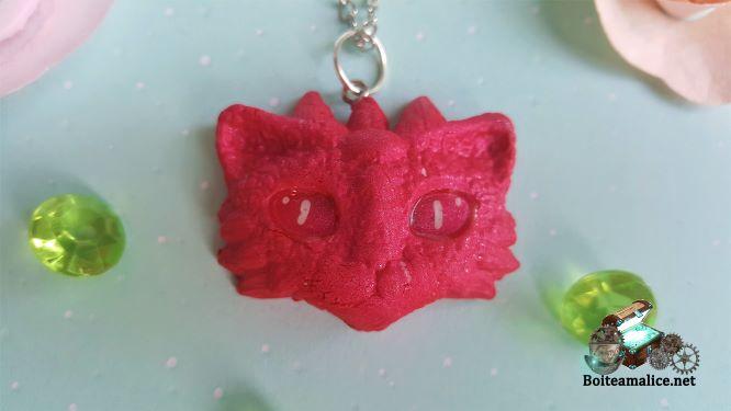 Collier Chat Dragon FAIT MAIN Pâte polymère tête de chat Dragon
