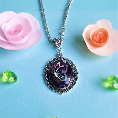 Collier petite fille Vintage FAIT MAIN Pendentif et chaîne couleur argent Pendentif cabochon en verre Collier...