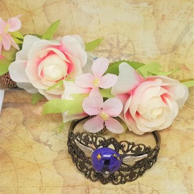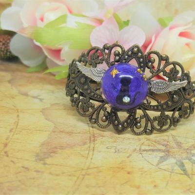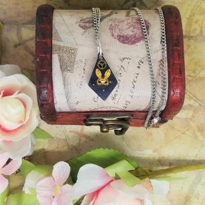 Broche steampunk demi masque lapin doré et étoile sur fond bleu nuit.Broche Steampunk Lapin bal masqué Petite...