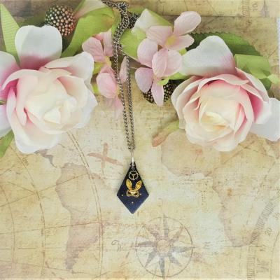Collier steampunk crâne oiseau - corbeau FAIT MAIN - Bijou résine Collier Corbeau Steampunk...
